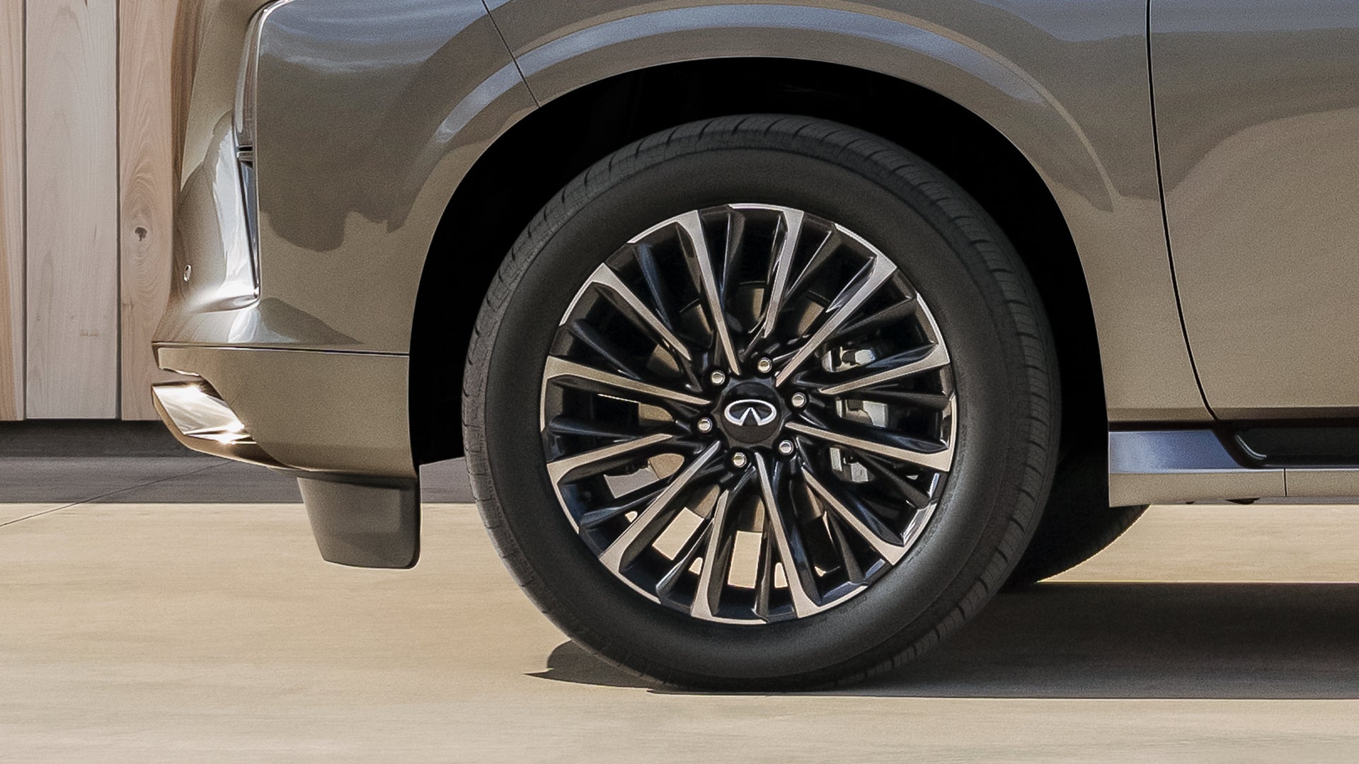 Nuevo INFINITI QX80 proyecta una confianza audaz y silenciosa que llama la atención sin necesidad de buscarla. Equipado con rines de aleación de aluminio de 22 pulgadas inspirados en la turbina de un avión para hacer más atractivo su diseño exterior.